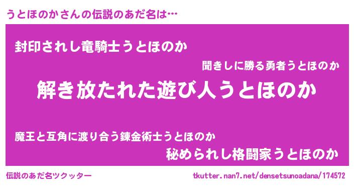 | 男性向けラノベタイトル風あだ名 | 『うとほのかに滅ぼされるだけの簡単なお仕事です』 |