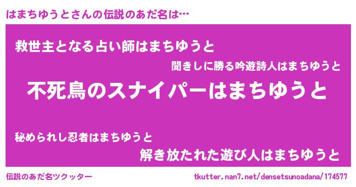 | 胡散臭い通販商品みたいなあだ名 | 『モテモテ間違いなし霊験あらたかなお札…その名も「はまちゆうと」』 |