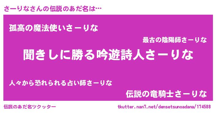 | ヘコむあだ名 | 『さーりな(小並感)』『さーを』 |