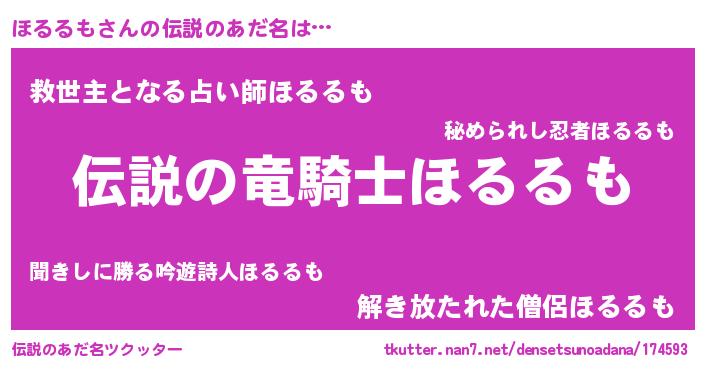 | 意味不明あだ名 | 『住所不定無職ほるるも(5歳)』 |