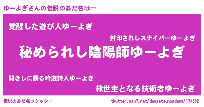 | 意味不明あだ名 | 『ゆーよぎフォーエバー』 |