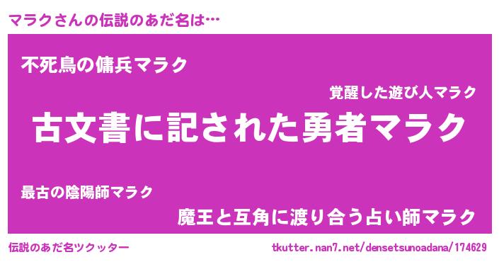 | ヒーロー風カッコイイあだ名 | 『仮面マラダー』『ネオマラク』 |