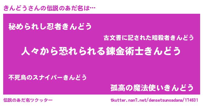 | 胡散臭い通販商品みたいなあだ名 | 『ガンによく効く冬虫夏草…その名も「きんどう」』 |