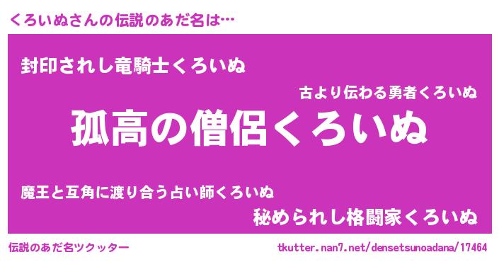 | 意味不明あだ名 | 『とにかく怪しいくろいぬ』 |