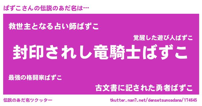 | 胡散臭い通販商品みたいなあだ名 | 『あなたにだけ特別に提供する100年もののヴィンテージワイン…その名も「ばずこ」』 |