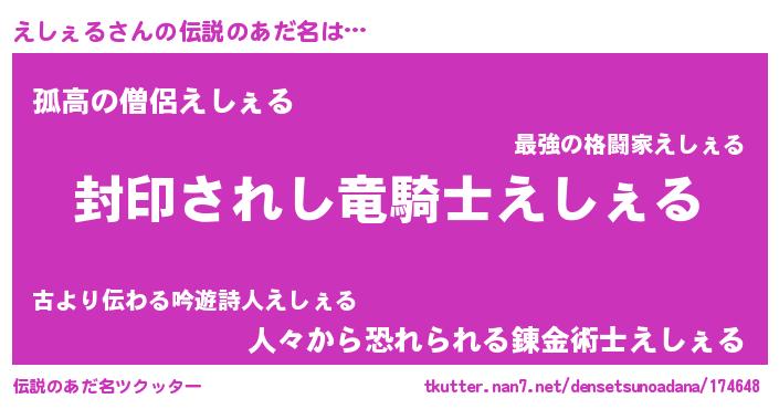 | 意味不明あだ名 | 『ペロリンえしぇる』『自称えしぇる』 |