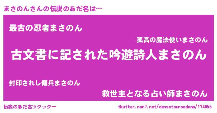 | 意味不明あだ名 | 『自称まさのん』『永久保存まさのん』 |