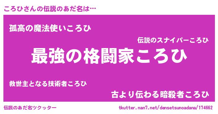 | 意味不明あだ名 | 『ころひフォーエバー』『永久保存ころひ』 |