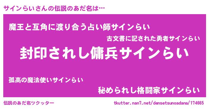 | 胡散臭い通販商品みたいなあだ名 | 『億万長者になれる水晶球…その名も「サインらい」』 |