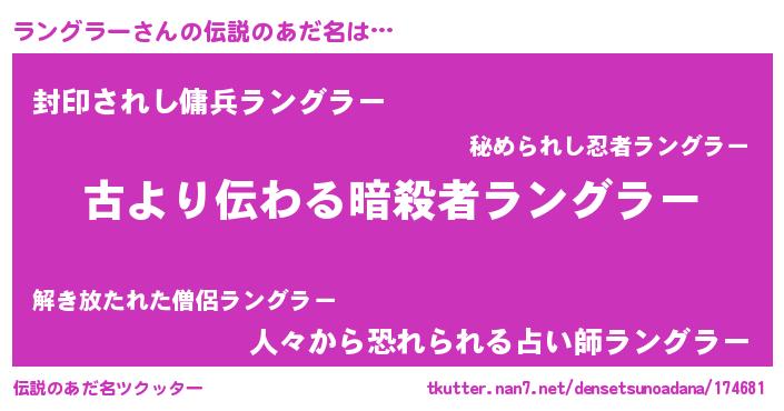 | 胡散臭い通販商品みたいなあだ名 | 『来世でも幸せになれる健康食品…その名も「ラングラー」』 |