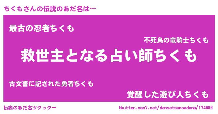 | ヒーロー風カッコイイあだ名 | 『天空の使者ちくも』『仮面チクダー』 |