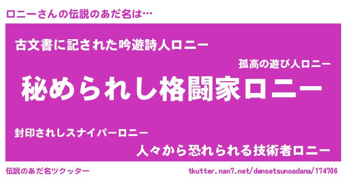 | ファンタジー風あだ名 | 『エターナルロニーー』『ロニディッシュ』 |