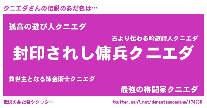 | 意味不明あだ名 | 『自称クニエダ』『ペロリンクニエダ』 |