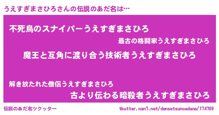 | ヘコむあだ名 | 『うえにー』『うえすぎまさひろ(震え声)』 |