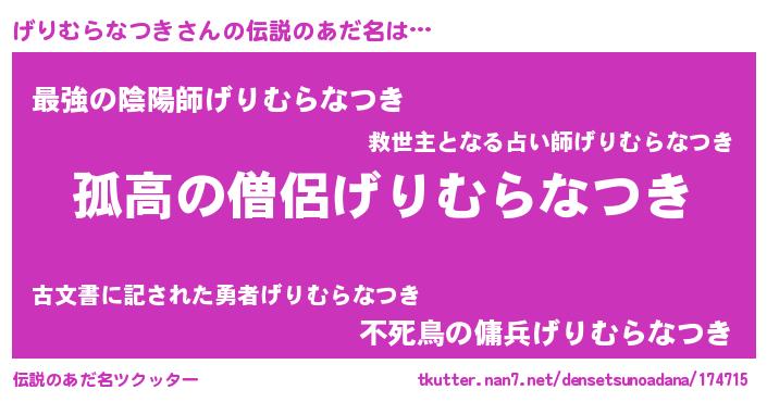 | 意味不明あだ名 | 『とにかく怪しいげりむらなつき』 |
