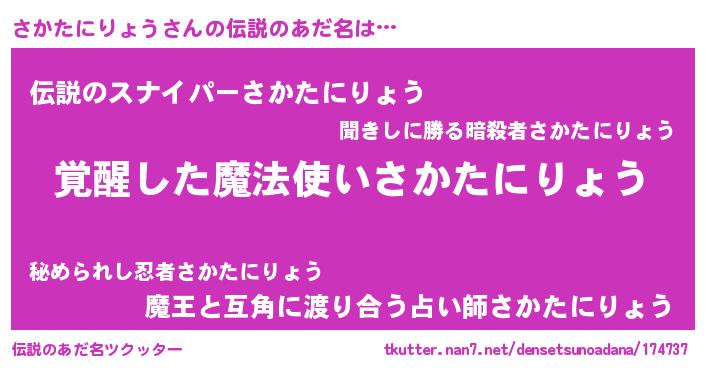 | 男性向けラノベタイトル風あだ名 | 『うちのさかたにりょうが世界を掌握している!』 |