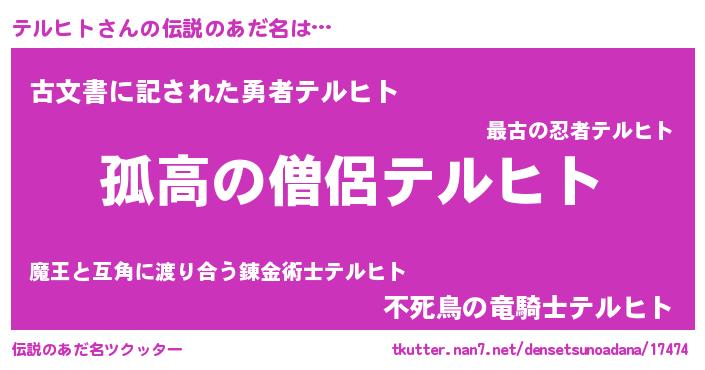 | 胡散臭い通販商品みたいなあだ名 | 『信頼と実績のネックレス…その名も「テルヒト」』 |