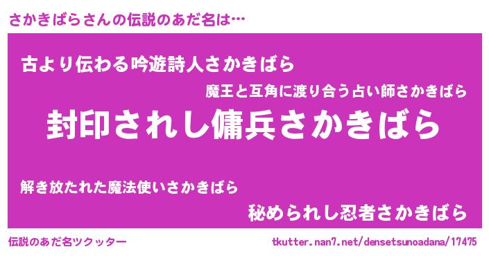 | 男性向けラノベタイトル風あだ名 | 『サカキバラアートオンライン』 |