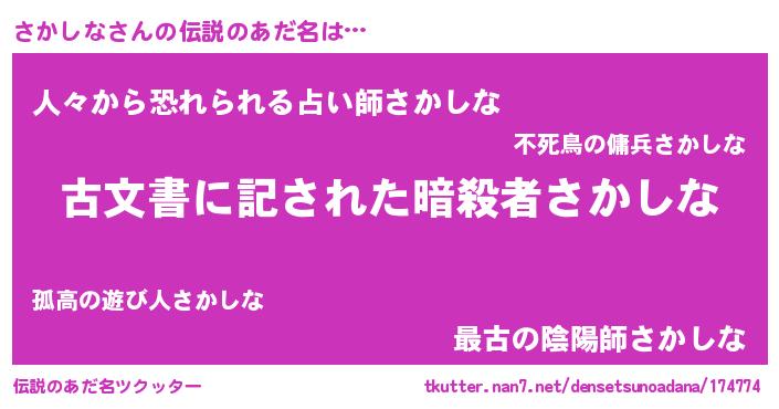 | 意味不明あだ名 | 『永久保存さかしな』『自称さかしな』 |