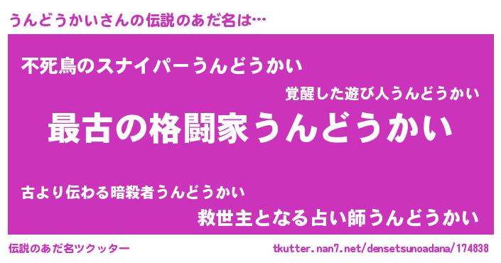 | ヒーロー風カッコイイあだ名 | 『仮面ウンダー』『スーパーウンドウカイ』 |