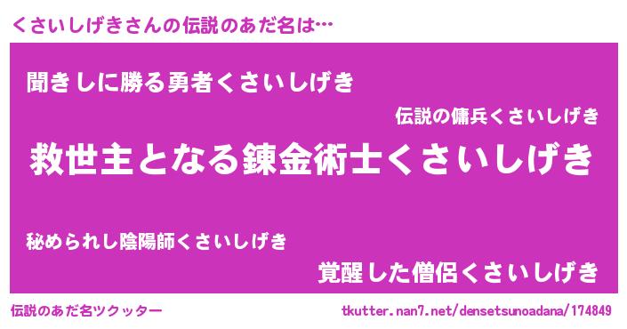 | 意味不明あだ名 | 『自称くさいしげき』 |