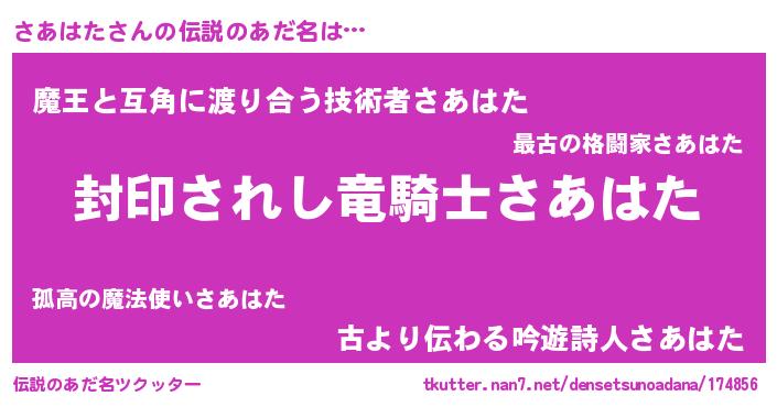 | 男性向けラノベタイトル風あだ名 | 『さあはたに滅ぼされるだけの簡単なお仕事です』 |