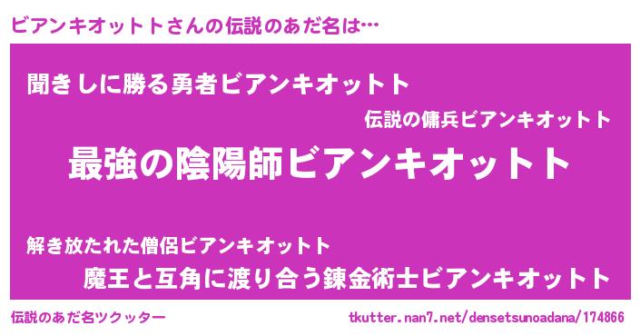 | ファンタジー風あだ名 | 『エターナルビアンキオットトー』 |