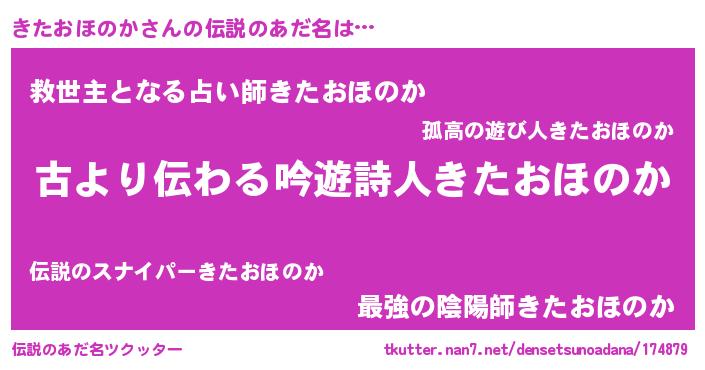 | 意味不明あだ名 | 『永久保存きたおほのか』 |