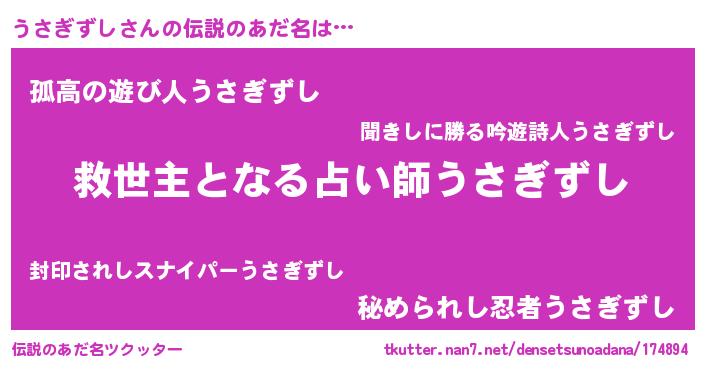 | ポケモン風あだ名 | 『ウックウザ』『ヒウサギズシ』 |