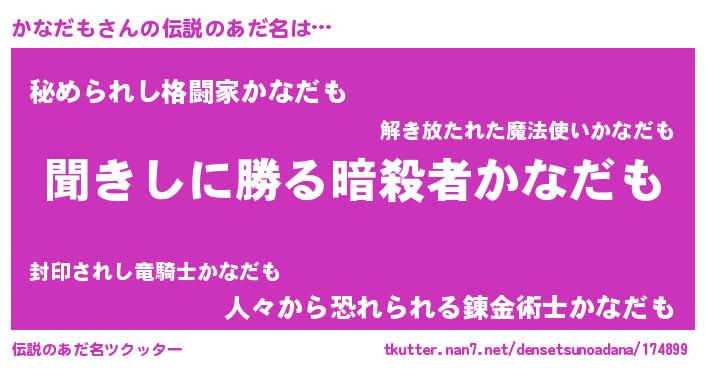 | 意味不明あだ名 | 『めかぶ科かなだも属』『自称かなだも』 |
