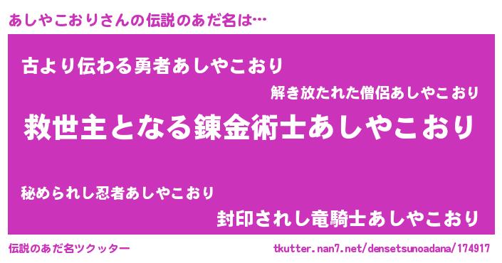 あしやこおりさんの伝説のあだ名をツクッター!