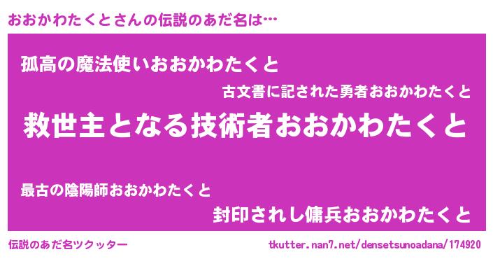 | ヒーロー風カッコイイあだ名 | 『慈愛の使者おおかわたくと』 |