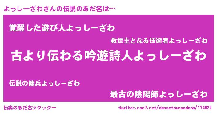 | ヘコむあだ名 | 『よっしーざわ(小並感)』『よっっちょ』 |