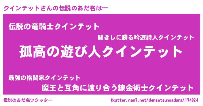 | ヒーロー風カッコイイあだ名 | 『仮面クイダー』『暗黒騎士クイ』 |