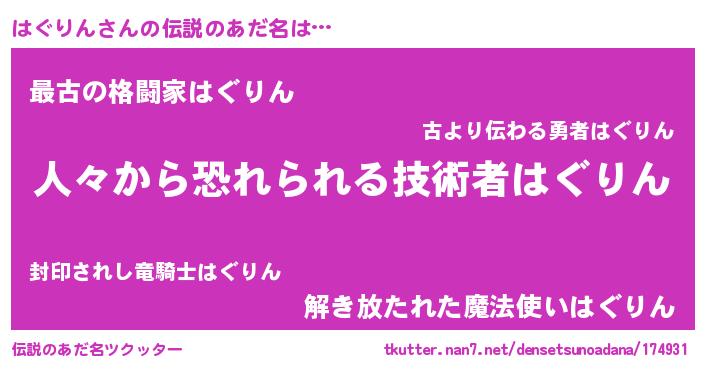 | 意味不明あだ名 | 『自称はぐりん』『はぐりんフォーエバー』 |