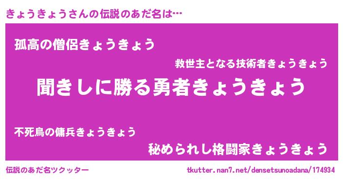| ヒーロー風カッコイイあだ名 | 『ウルトラ戦士キョウキョウ』 |