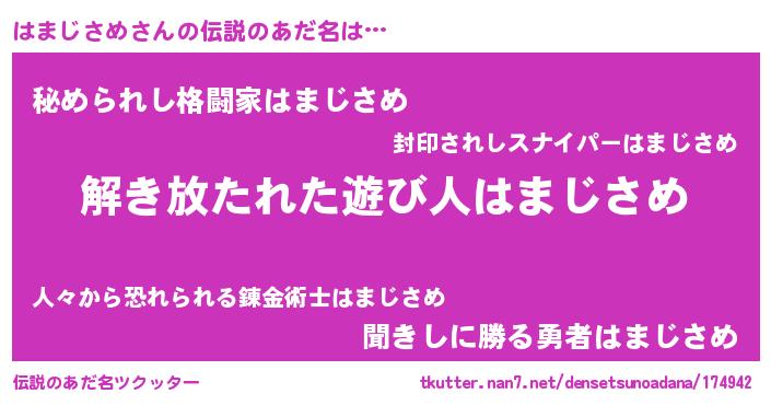 | 女子向けラノベタイトル風あだ名 | 『闇のはまじさめ』 |