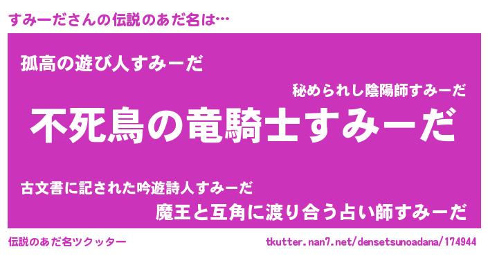 | 女子向けラノベタイトル風あだ名 | 『すみーだ姫と円卓の騎士』 |