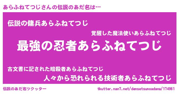 | 胡散臭い通販商品みたいなあだ名 | 『運命の人と巡り会える高級そうな壺…その名も「あらふねてつじ」』 |