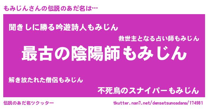 | 意味不明あだ名 | 『住所不定無職もみじん(89歳)』 |