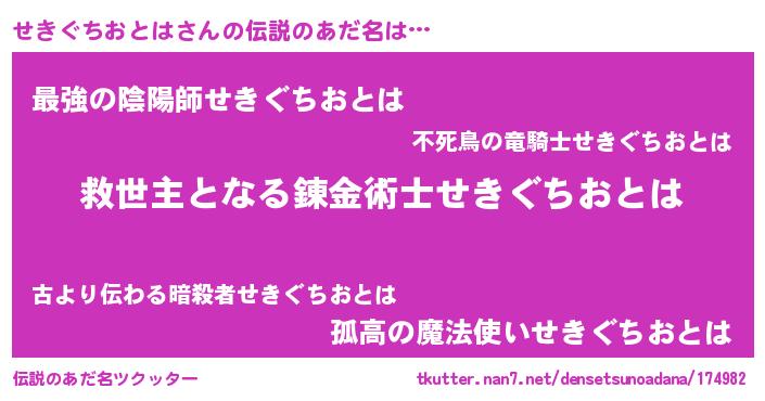 | ヒーロー風カッコイイあだ名 | 『天空の使者せきぐちおとは』 |