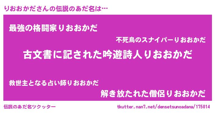 | 欧米人風あだ名 | 『りおおかだ・ステッグマイヤー』 |