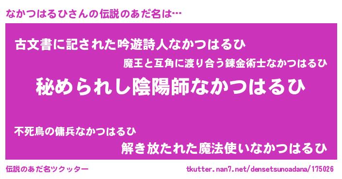 | ヒーロー風カッコイイあだ名 | 『仮面ナカダー』『ネオナカツハルヒ』 |
