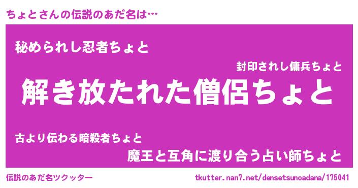| 意味不明あだ名 | 『とにかく怪しいちょと』『自称ちょと』 |