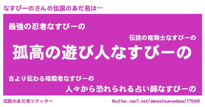 | 女子向けラノベタイトル風あだ名 | 『なすびーのは平凡を望む』 |