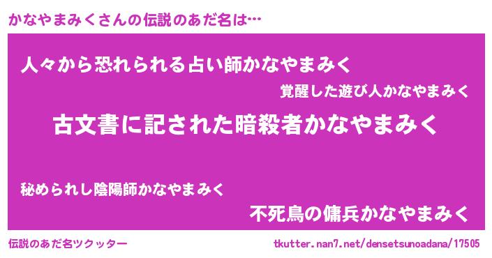 | 意味不明あだ名 | 『永久保存かなやまみく』 |
