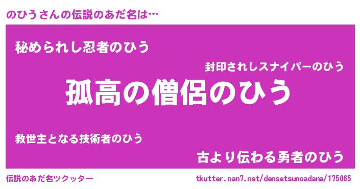 | ヒーロー風カッコイイあだ名 | 『暗黒騎士ノヒ』『ウルトラのひうマン』 |