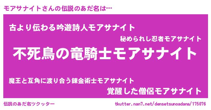 | ヒーロー風カッコイイあだ名 | 『最強戦士モアサナイト』『天弓騎士モア』 |