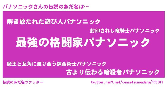 | 男性向けラノベタイトル風あだ名 | 『パナソニックに滅ぼされるだけの簡単なお仕事です』 |