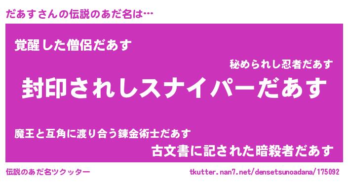 | 意味不明あだ名 | 『自称だあす』『ニラ科だあす属』 |